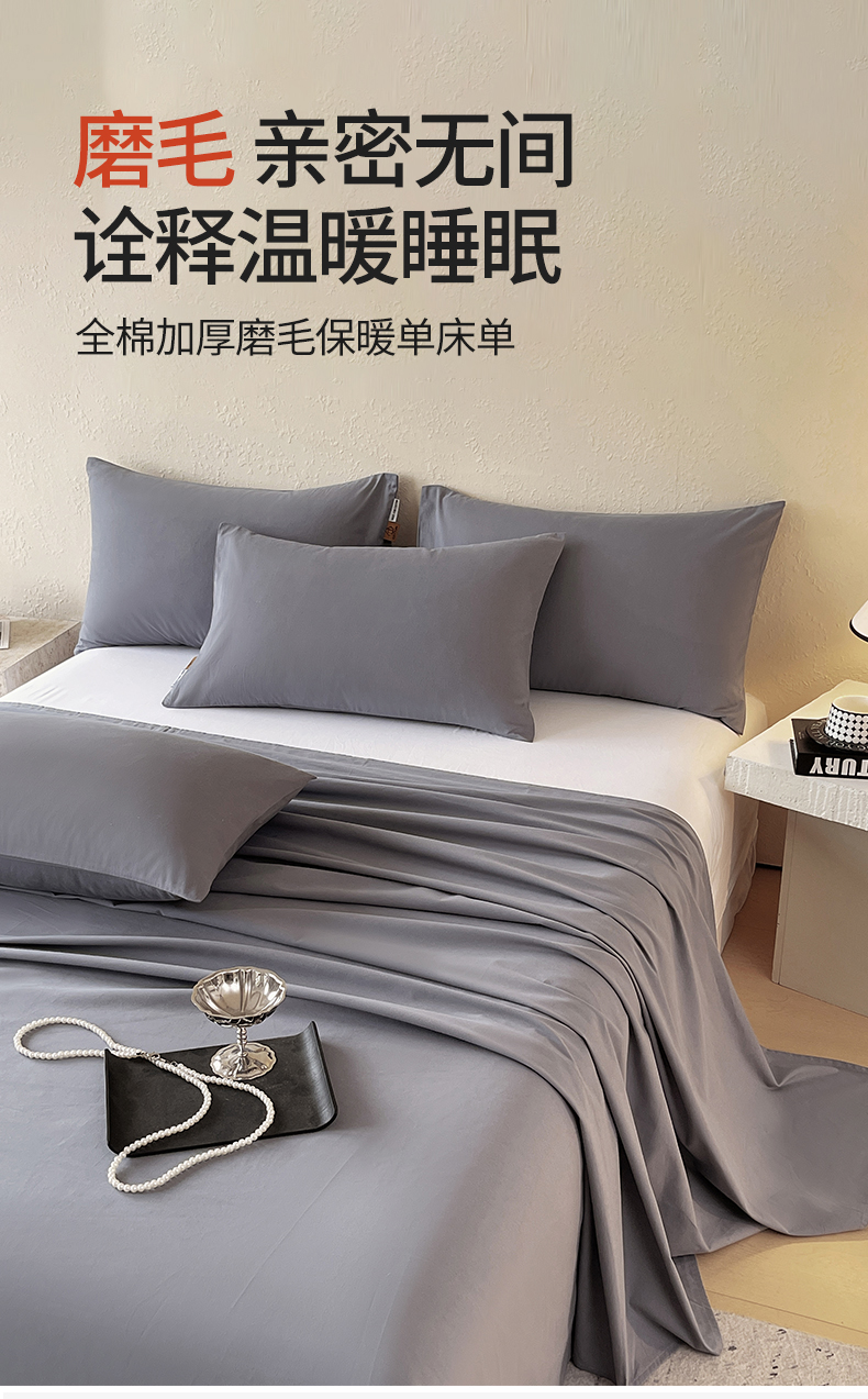 凯磊家纺 2025新款加厚磨毛纯色系列床单 星空灰