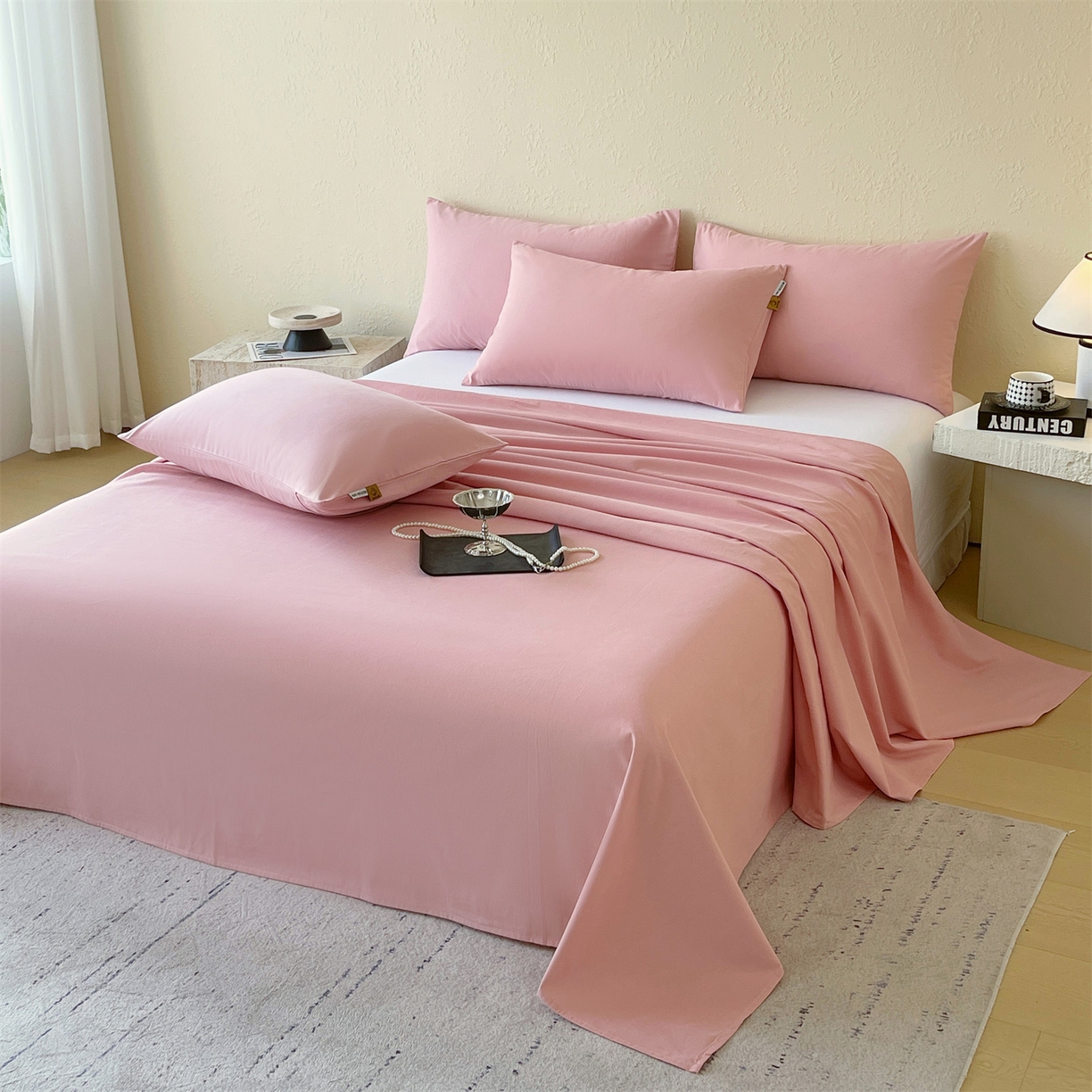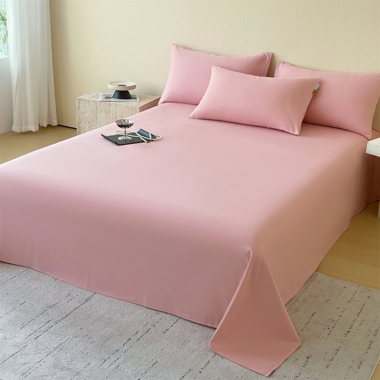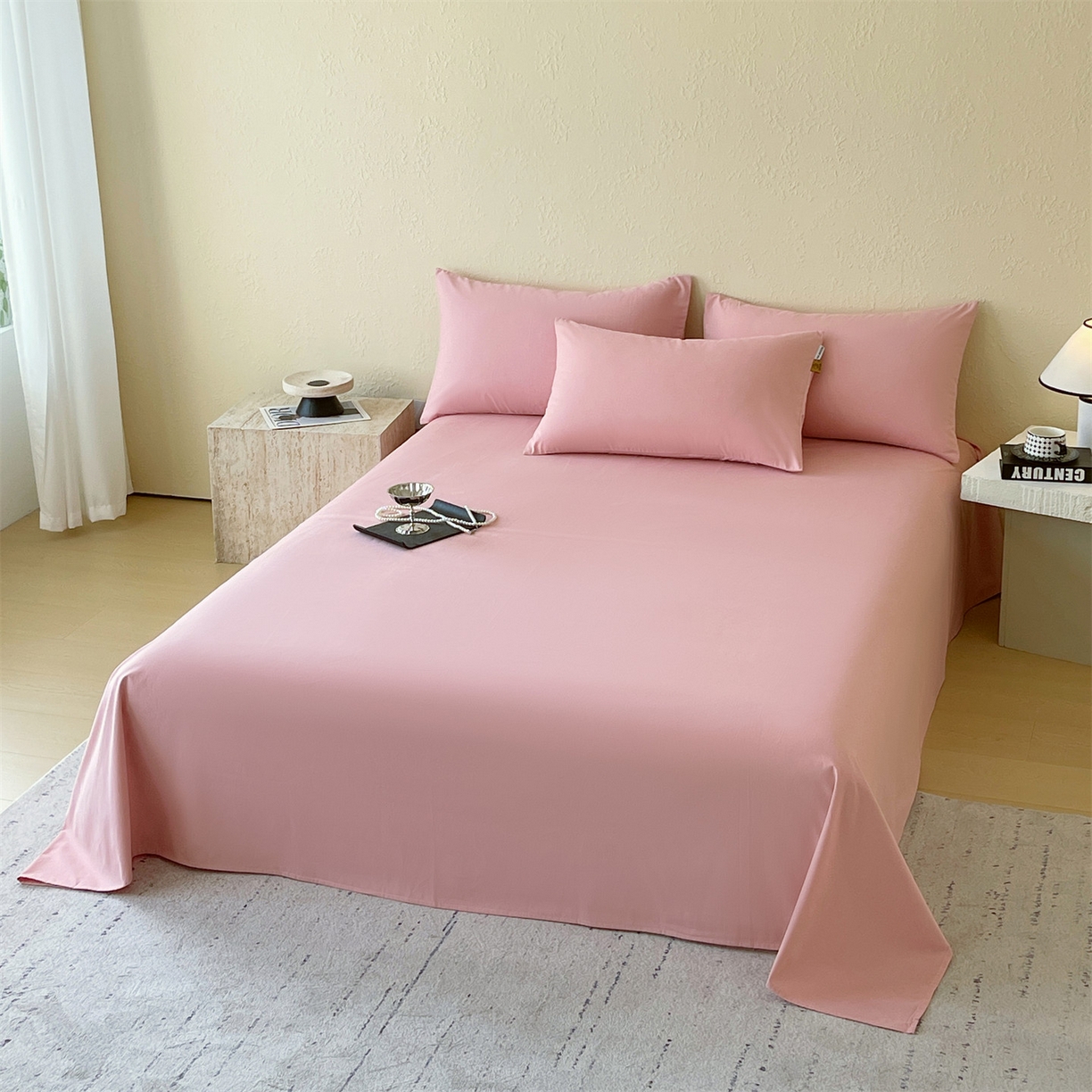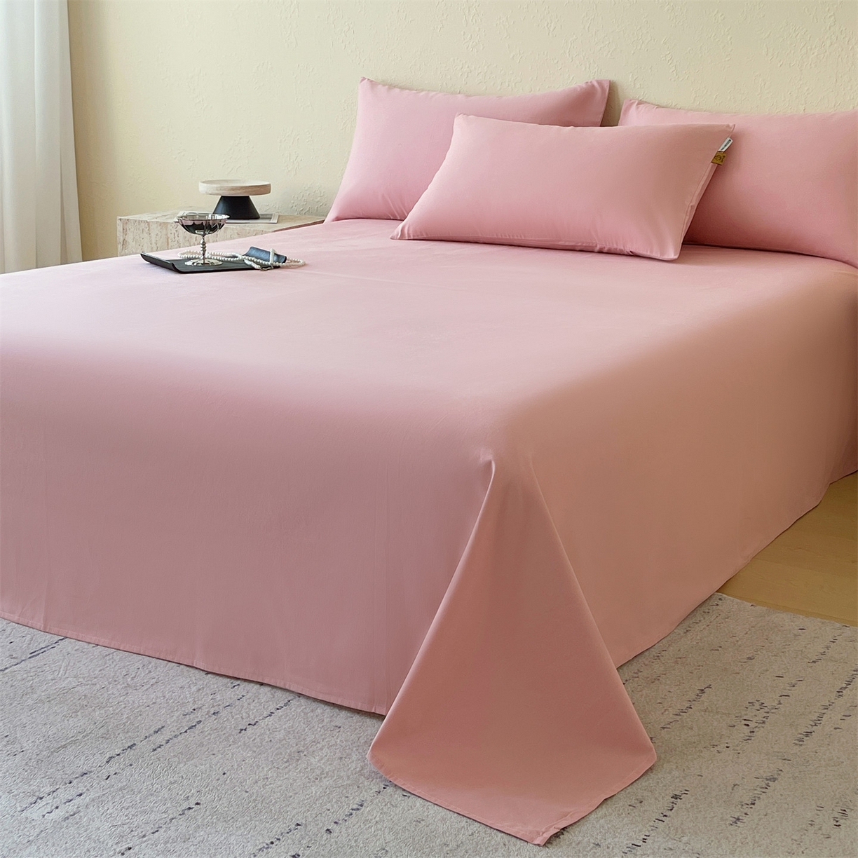 凯磊家纺 2025新款加厚磨毛纯色系列床单 胭脂粉